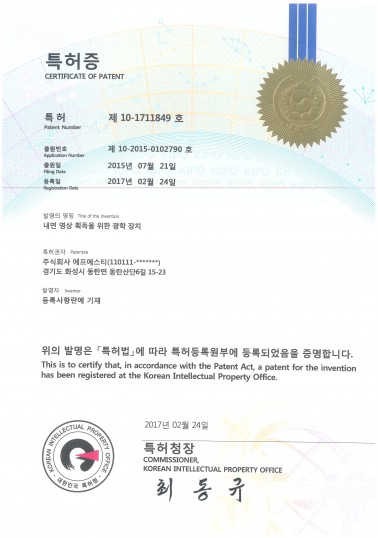 제 10-1840648 호 가스 해리 시스템 제 10-1739369 호 반도체 공정 설비용 온도 조절 시스템 제 10-1895329 호 가스 해리 시스템 제 10-1753132 호 유기물 희생층 기판을 이용한 초극자외선용 펠리클의 제조방법 제 10-1705667 호 반도체 공정용 칠러 장치 제 10-1738887 호 액티닉 (Actinic) EUV 펠리클 검사방법 및 검사장치 제 10-1688888 호 열전소자를 이용한 온도제어시스템 제 10-1711849 호 내면 영상 획득을 위한 광학 장치